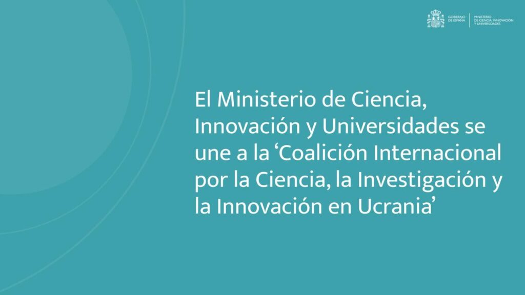 El Ministerio de Ciencia, Innovación y Universidades (MICIU), en representación del Gobierno de España, ha formalizado su adhesión a la ‘Coalición Internacional por la Ciencia, la Investigación y la Innovación en Ucrania’. Esta iniciativa, liderada por Ucrania, Italia, la Unión Europea y la UNESCO, busca reconstruir y modernizar el ecosistema de ciencia e innovación ucraniano, que ha sido gravemente afectado por la agresión rusa.