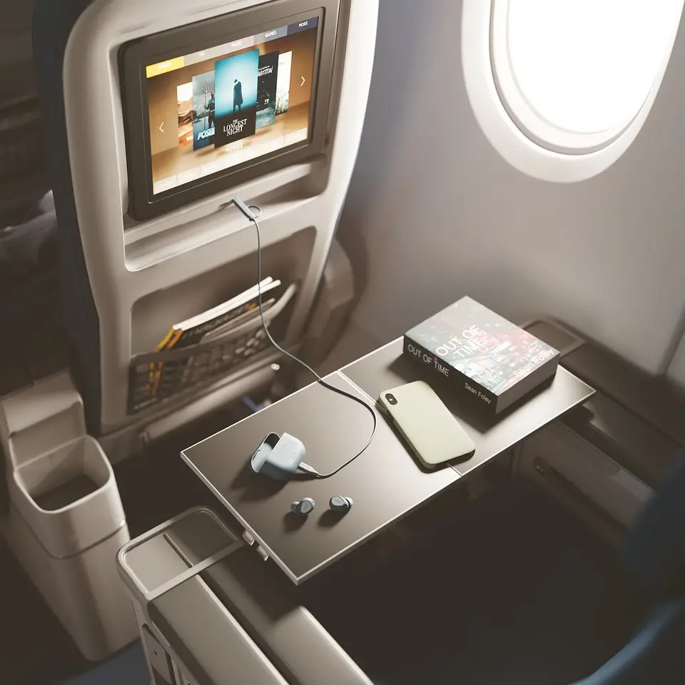 Con una perfecta integración en la carcasa, el chip integrado permite a los usuarios conectar dispositivos y transmitir audio sin esfuerzo directamente a sus auriculares. Disfrutando de una mejor sincronización de audio y vídeo gracias a una latencia inferior a las conexiones Bluetooth estándar entre el estuche y los auriculares, junto con una calidad de sonido Hi-Fi, de la mano del códec LC3. El versátil cable 2 en 1 convierte el estuche de carga inteligente en un adaptador que puede conectarse a cualquier dispositivo. En vuelos, al hacer ejercicio en la cinta o en casa viendo la televisión, los usuarios simplemente necesitan enchufar el estuche para disfrutar de una transmisión de sonido espacial directamente a sus auriculares.